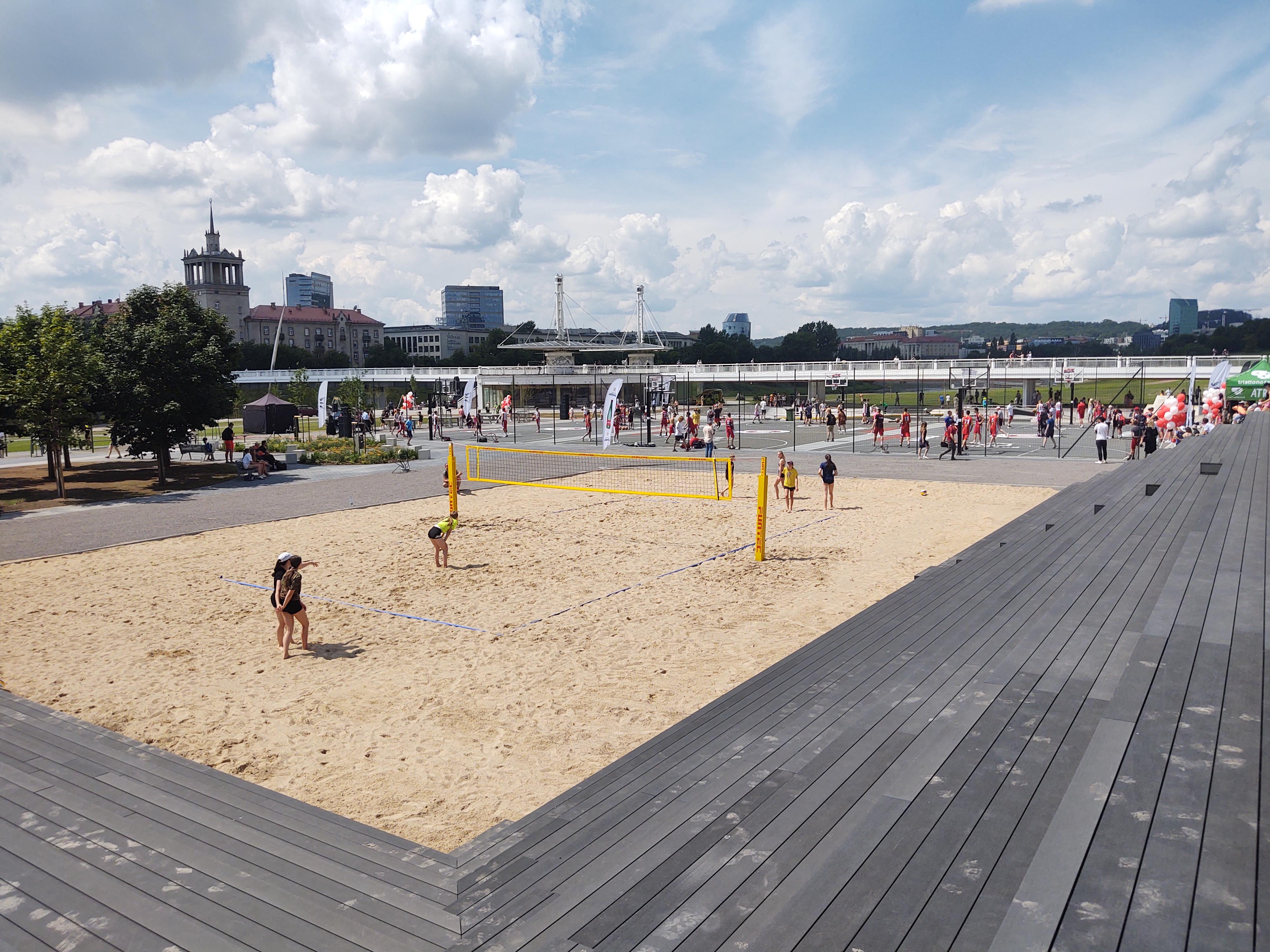 Вчера в Вильнюсе, у Белого моста, открыла свои «двери» обновленная спортивная площадка. На площади почти в 9 гектаров начали действовать 9 площадок для пляжного волейбола, три двухсторонних баскетбольных площадки, детские игровые площадки, открытые тренировочные площадки, скейт-парк для катания на роликовых коньках, самокатах и скейтбордах... obzor.lt »