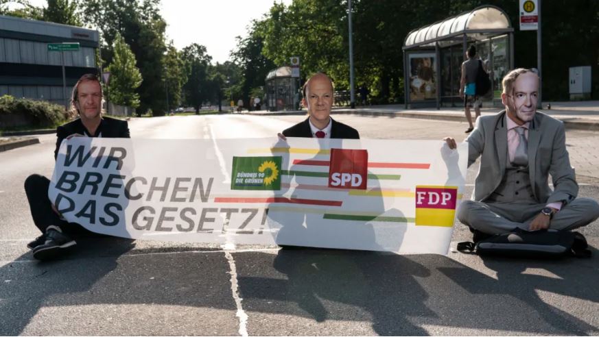 Экоактивисты в масках Шольца заблокировали движение в Германии