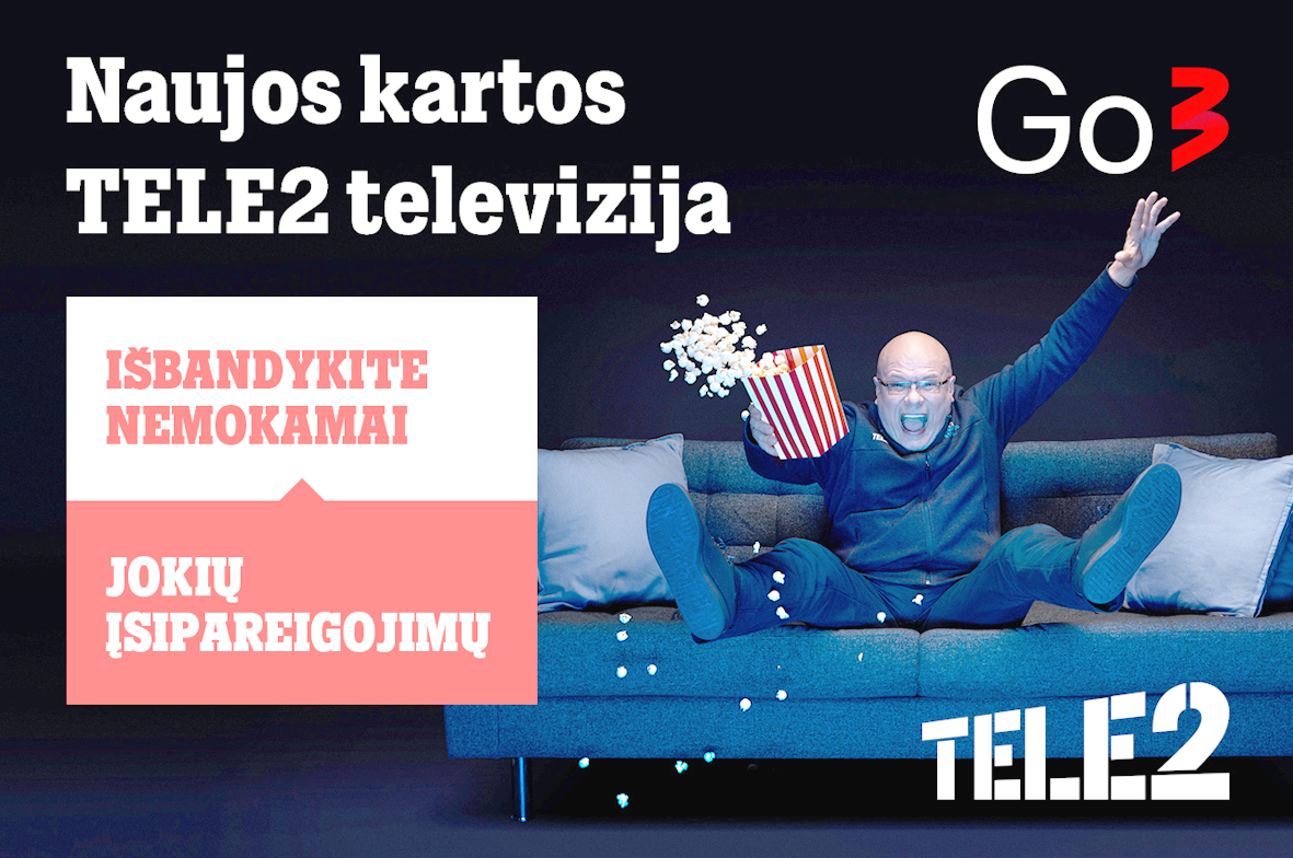 Телевидение «Go3», предназначенное для досуга всей семьи, сейчас можно испробовать совершенно бесплатно. «Tele2» подготовлено эксклюзивное предложение, благодаря которому в течение 1 месяца вы сможете без дополнительной платы смотреть отобранные самые популярные литовские и зарубежные фильмы, сериалы, шоу, мультфильмы и спортивные трансляции в подходящее именно для вас время и удобным для вас способом. obzor.lt »