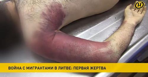 Общенациональное телевидение Белоруссии показало кадры, на котором видно тело умершего от побоев на литовской границе мигранта из Ирака, передает ВЗГЛЯД. «На его теле обнаружены следы жестоких побоев. obzor.lt »