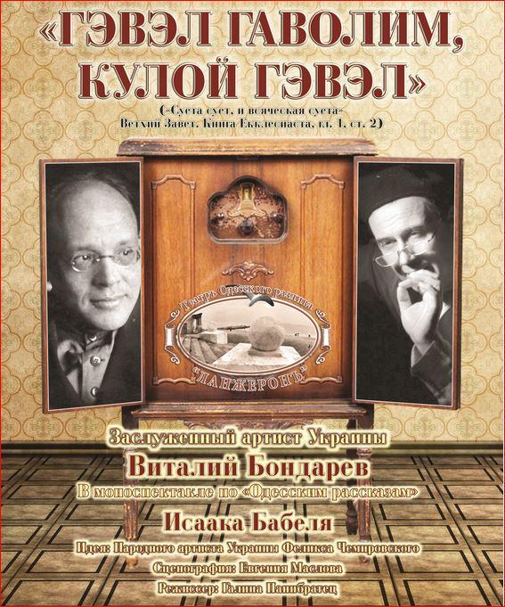 17 и 18 декабря Вильнюс снова ждёт встреча с уже полюбившимся Театром одесского разлива “Ланжерон” (Украина, Харьков). На сей раз гости представят «Суету сует…» из цикла «Одесские рассказы» Исаака Бабеля (на русском языке) в исполнении Заслуженного артиста Украины Виталия Бондарева (режиссер — Галина Панибратец)... obzor.lt »