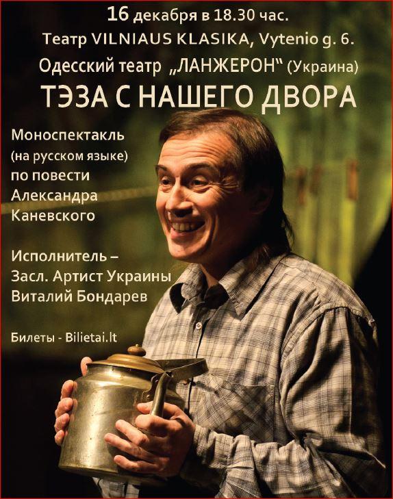 Вильнюсский театралов вскоре ждёт новая встреча с одесским театром «Ланжерон», который успел покорить сердца литовской публики во время предыдущих встреч. Спектакли состоятся в театре «Классика» (ул. obzor.lt »