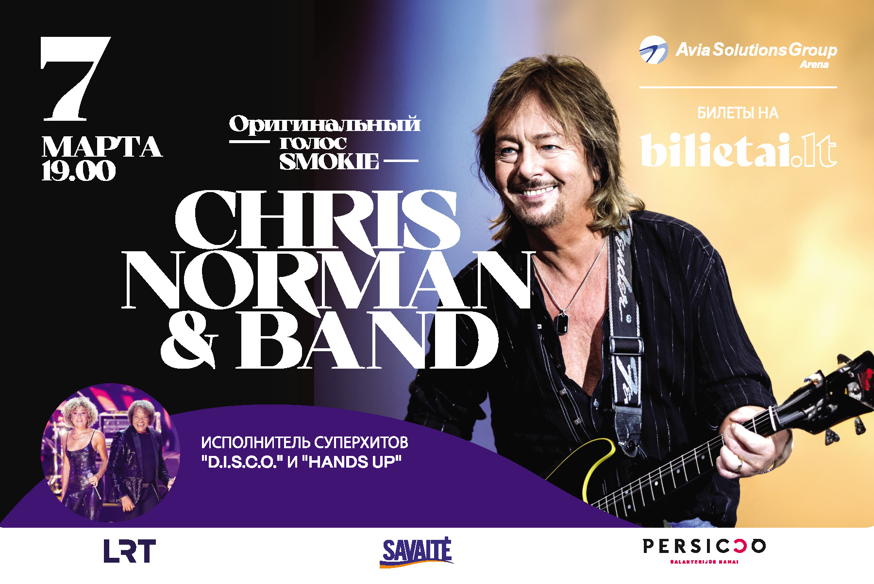 Уже очень скоро в Литве состоится презентация нового альбома легенды мировой музыки Криса Нормана 7 марта в вильнюсской Avia Solutions Group Arena (ул. Озо, 14) состоится концерт певца с оригинальным голосом группы Smokie - Криса Нормана и его группы. obzor.lt »