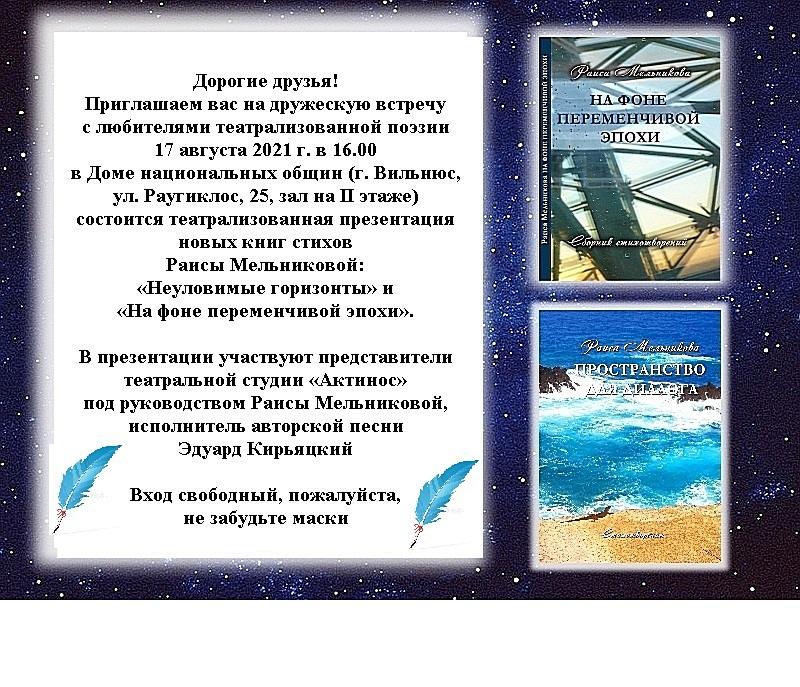 Одиннадцатый международный фестиваль духовной поэзии «Покрова», ежегодно проводимый каунасским клубом «Надежда» Русского собрания Литвы и снискавший международную известность, начался в этом году, как обычно, с представления собравшимся присутствующих в зале поэтов и почётных гостей. obzor.lt »
