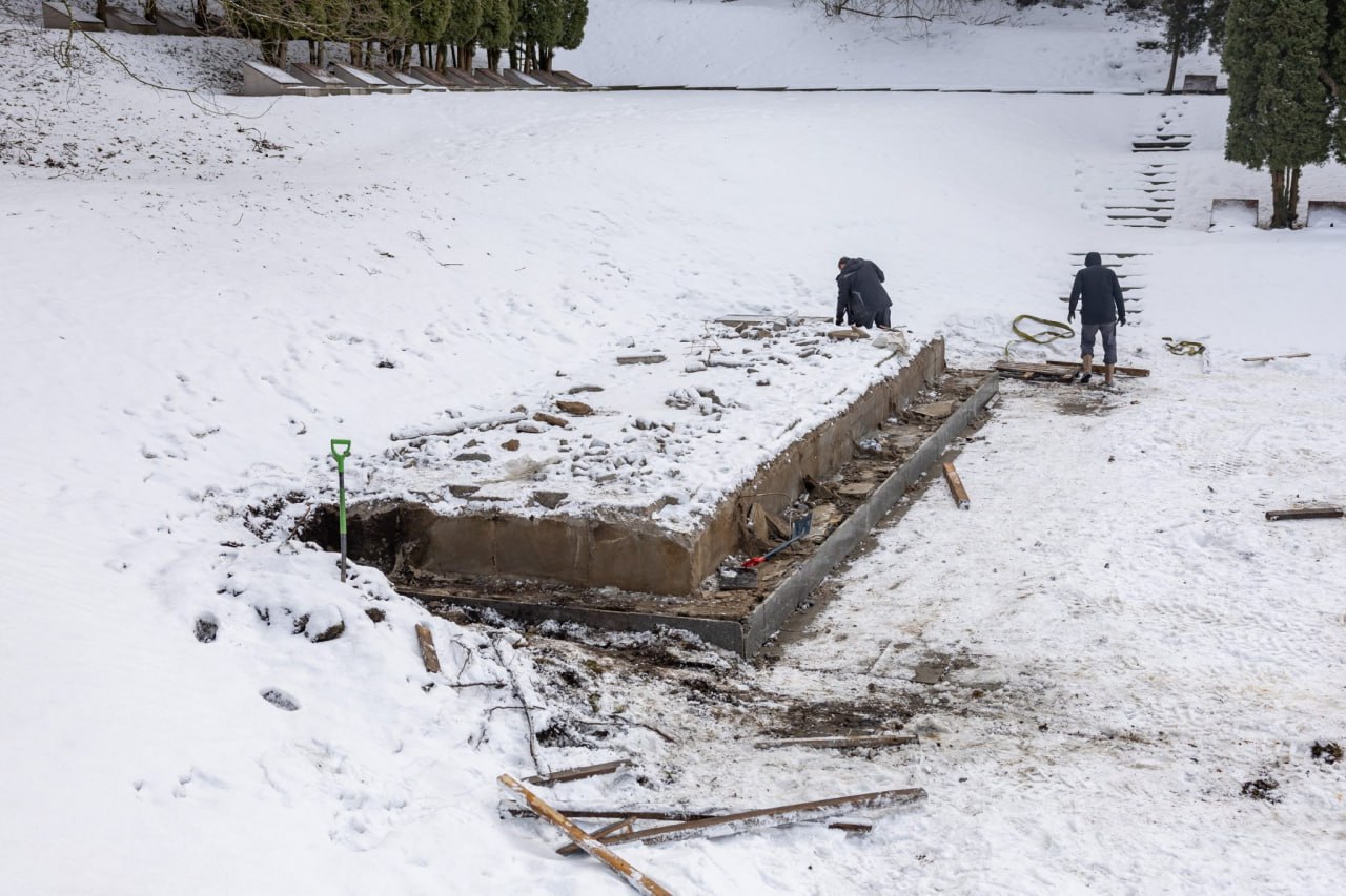 На Антакальнисском кладбище снесли постамент советского мемориала