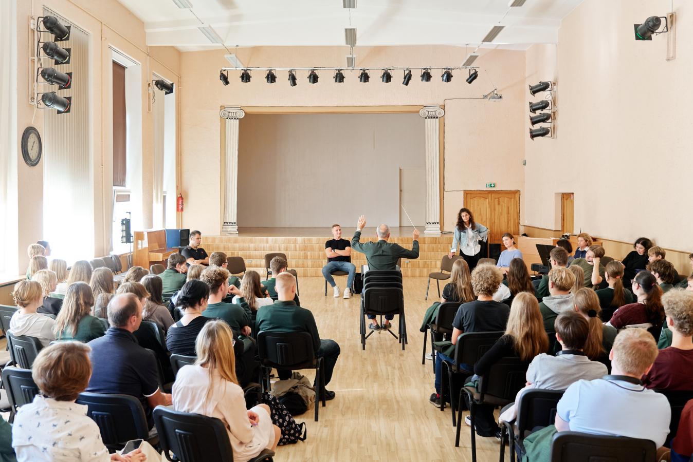 Встреча с премьерой оперы «Любовный напиток» началась с интерактивного образовательного путешествия по клайпедским школам