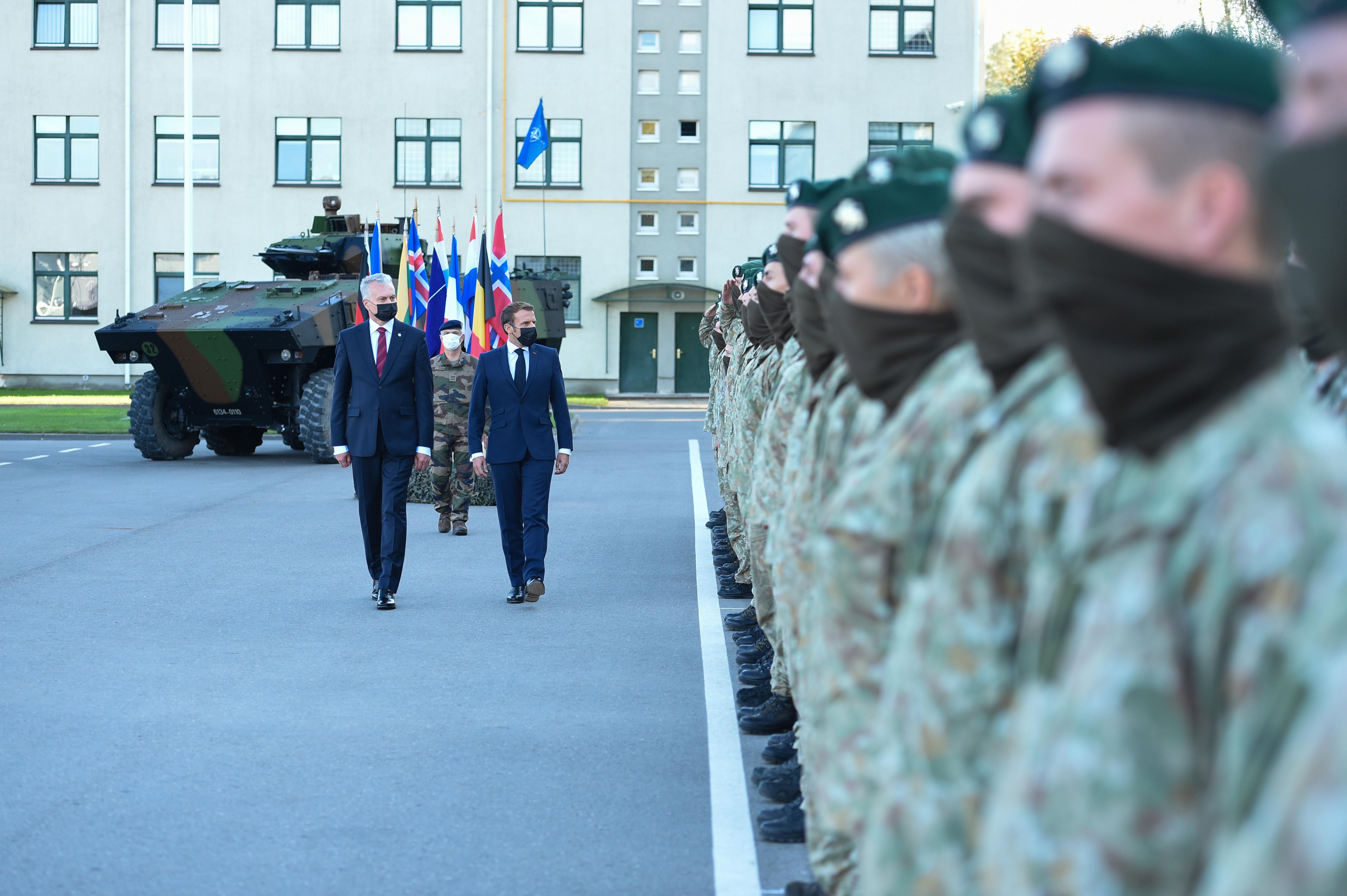 Президент Франции Эммануэль Макрон во вторник ближе к вечеру прибыл в Руклу для встречи с командованием боевой группы батальона Сил передового базирования НАТО и служащими в его составе французскими военными. obzor.lt »