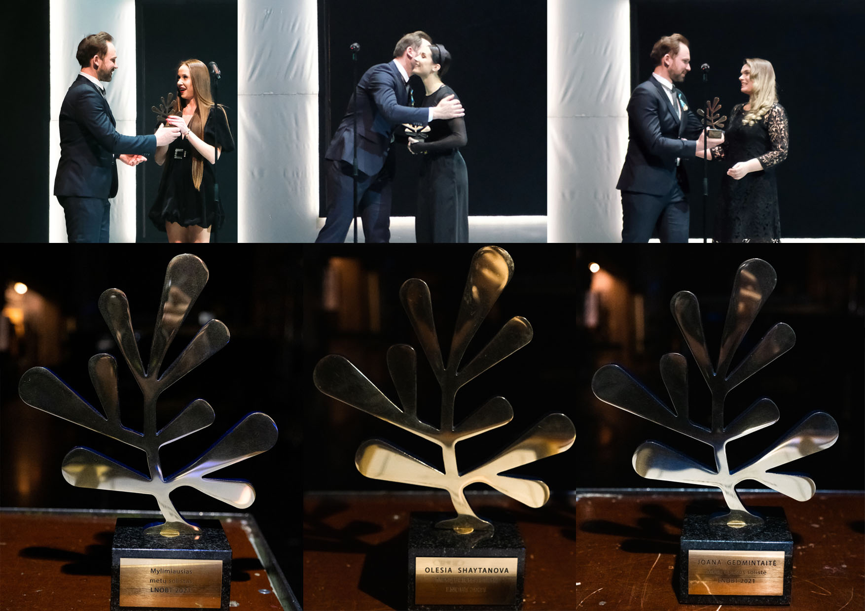 На сцене Литовского национального театра оперы и балета (ЛНТОБ) вчера, 12 марта, состоялась церемония награждения лучших солистов года. Артистам оперы и балета, создавшим лучшие роли в сезоне 2020-2021 года, были вручены дипломы, скульптуры «Ауксине рута» и подарки от спонсоров театра. obzor.lt »