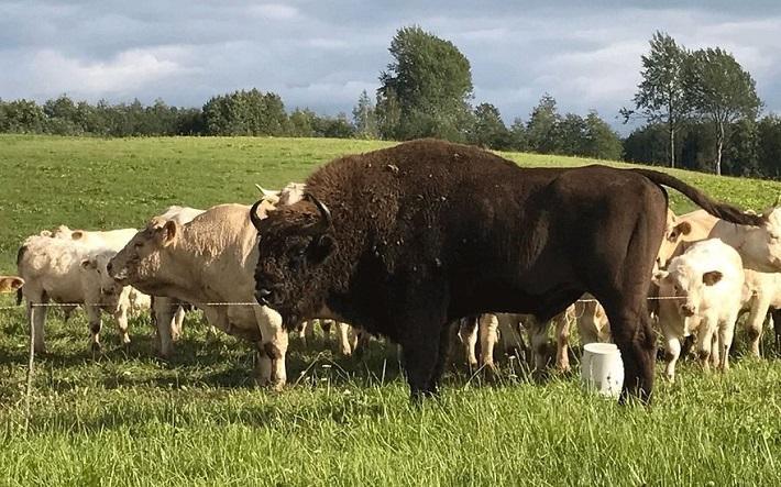 Витаутас решил съездить и посмотреть на пасущихся в поле коров. Oн очень удивился - вместе с коровами пасся зубр. Дикое животное нисколько не испугалось трактора, на котором приехал Витаутас. ru.delfi.lt »