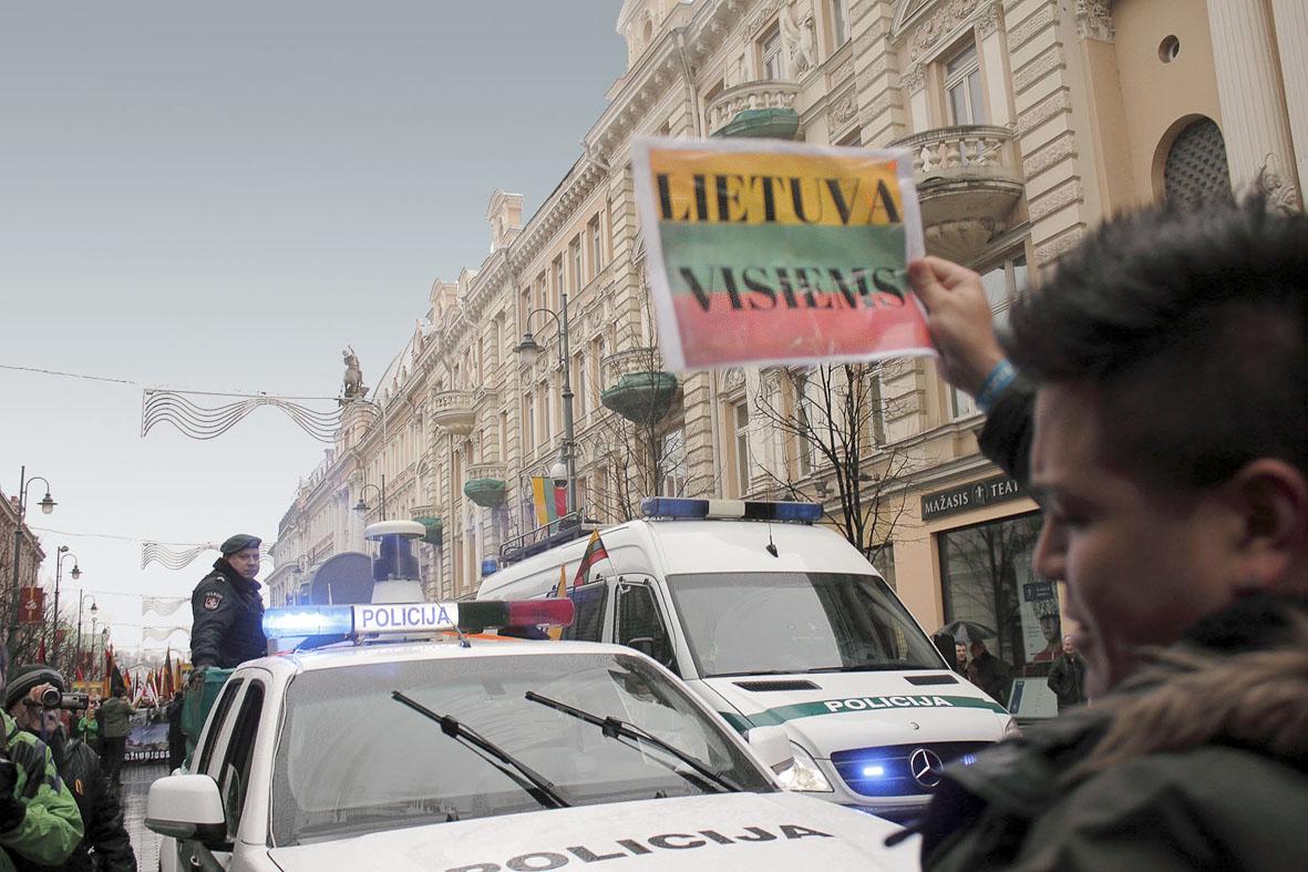 В пятницу на прошлой неделе, когда Литва отмечала День восстановления независимости, в Вильнюсе состоялось два шествия. Вначале вслед за ротой почётного караула и оркестром Литовской армии от площади Няприклаусомибес, что возле Сейма, до Кафедральной площади прошли все желающие.