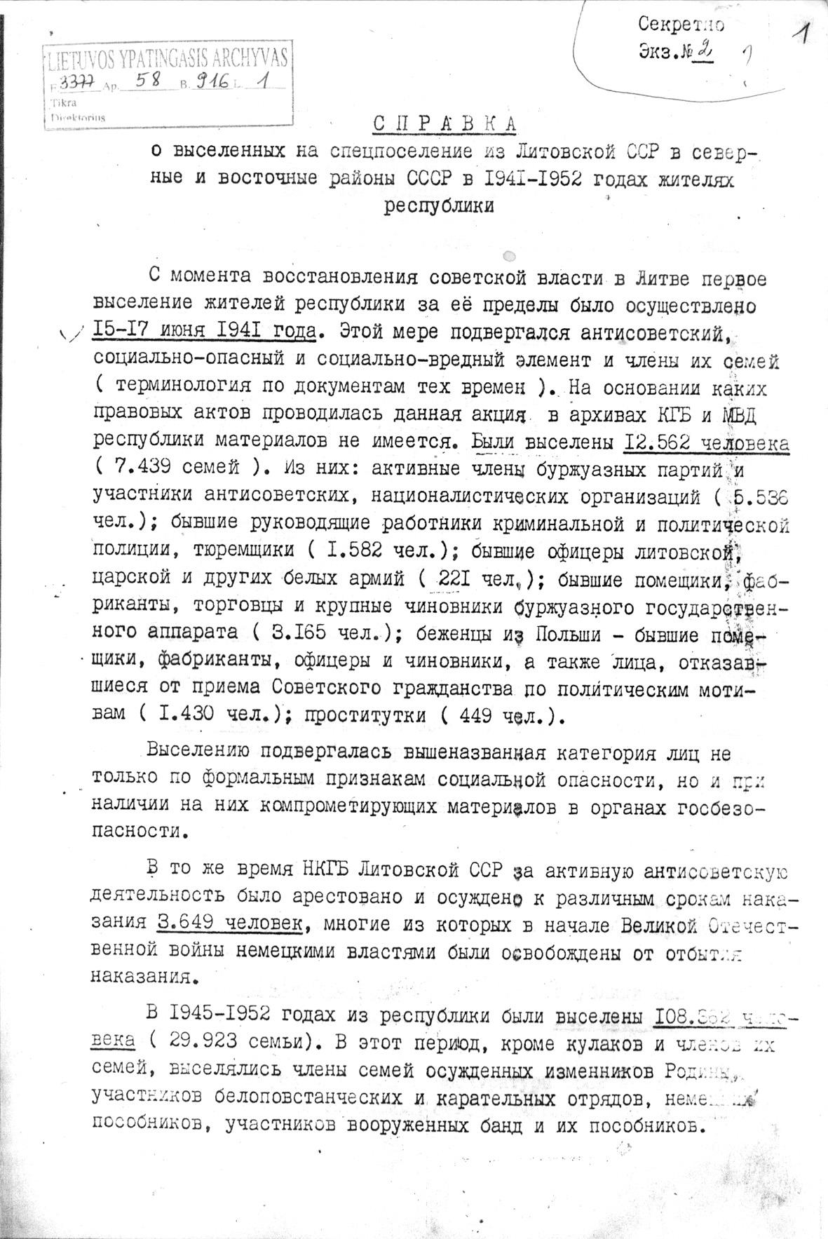 14 июня исполняется 77 лет с начала сталинской депортации из Литвы. В этот день в 1941 году на Дальний Север и в Сибирь отправились первые эшелоны со ссыльными. Тогда в товарных вагонах на непригодные для проживания территории были вывезены 15 581 человек, что составляет примерно 0,6% от общей численности населения республики.