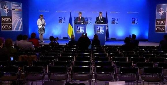 Пользователи социальных сетей открыто потешаются над фотографией с пресс-конференции президента Украины Петра Порошенко и генерального секретаря НАТО Йенса Столтенберга, которая была сделана на саммите НАТО.