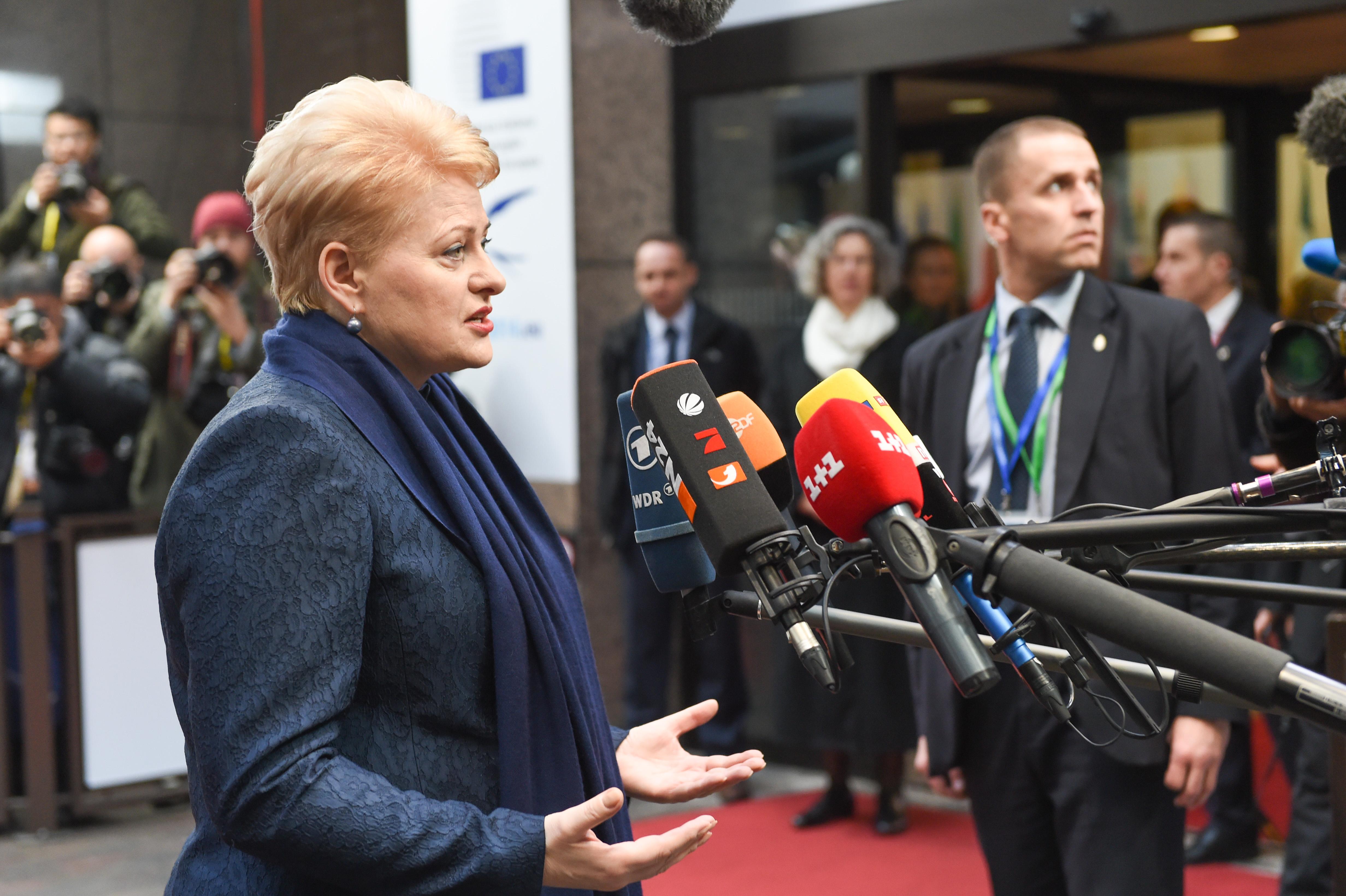 Во время дискуссии лидеров стран Евросоюза (ЕС) о миграционных вызовах президент Литвы Даля Грибаускайте в четверг представила инициативу Литвы по созданию единого стандарта в охране границы.