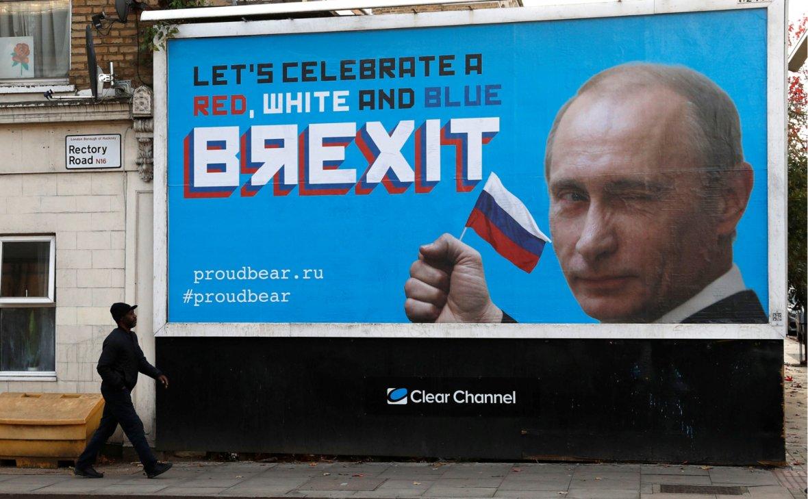 Группа Proud Bear разместила пародийные билборды с Владимиром Путиным и Борисом Джонсоном в Лондоне. Так в Proud Bear хотели подчеркнуть «роль» агентов ГРУ в выходе Британии из Евросоюза В Лондоне группа активистов разместила несколько пародийных плакатов с фотографией президента Владимира Путина и благодарностью за «вклад» в выход Великобритании из Евросоюза.