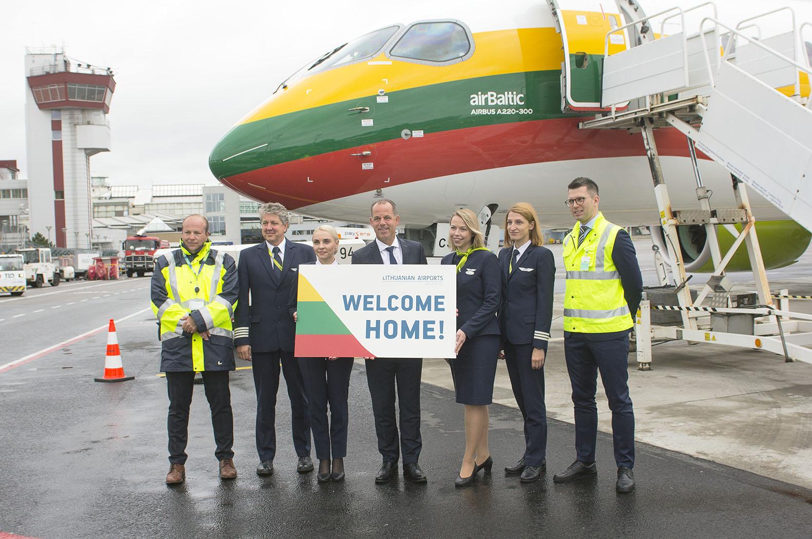 В понедельник в Вильнюсском международном аэропорту при огромном стечении представителей литовских СМИ и под музыку духового оркестра впервые приземлился самолёт, окрашенный в цвета литовского флага.