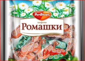 Российская кондитерская фабрика «Рот Фронт» судится с украинской компанией Roshen. Предметом спора стали похожие этикетки конфет «Ромашка». Согласно электронным материалам суда от 13 мая, «Рот Фронт» выступил против регистрации Roshen этикетки с изображением ромашки.