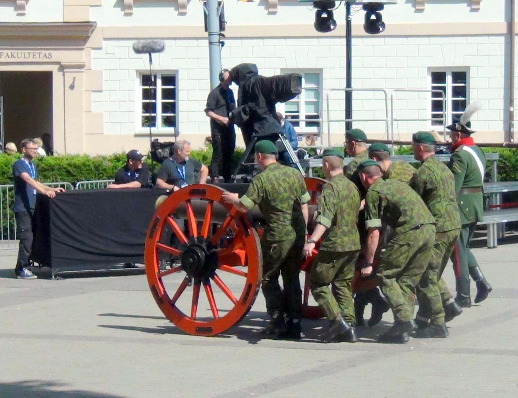В связи с предстоящей выставкой из собрания художественных произведений Владимира Тарасова, накануне пришлось перекрыть несколько улиц вильнюсского Старого города и использовать подъемный кран.