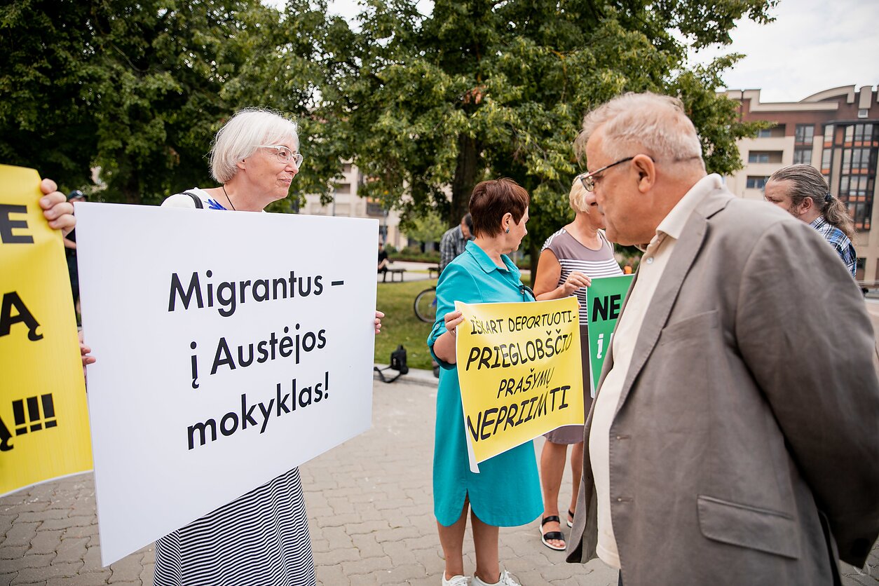 Около тридцати человек у здания литовского сейма требовали не в пускать в Литву нелегальных мигрантов из стран Ближнего Востока и Африки, прибывающих из Беларуси. Во вторник митинг организовала непарламентская партия Национальное объединение Pro Patria.
