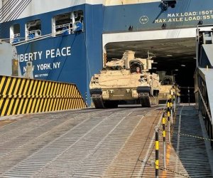 Во вторник в Клайпедском морском порту состоялась операция выгрузки военной техники ротационных сухопутных сил США в Литве.