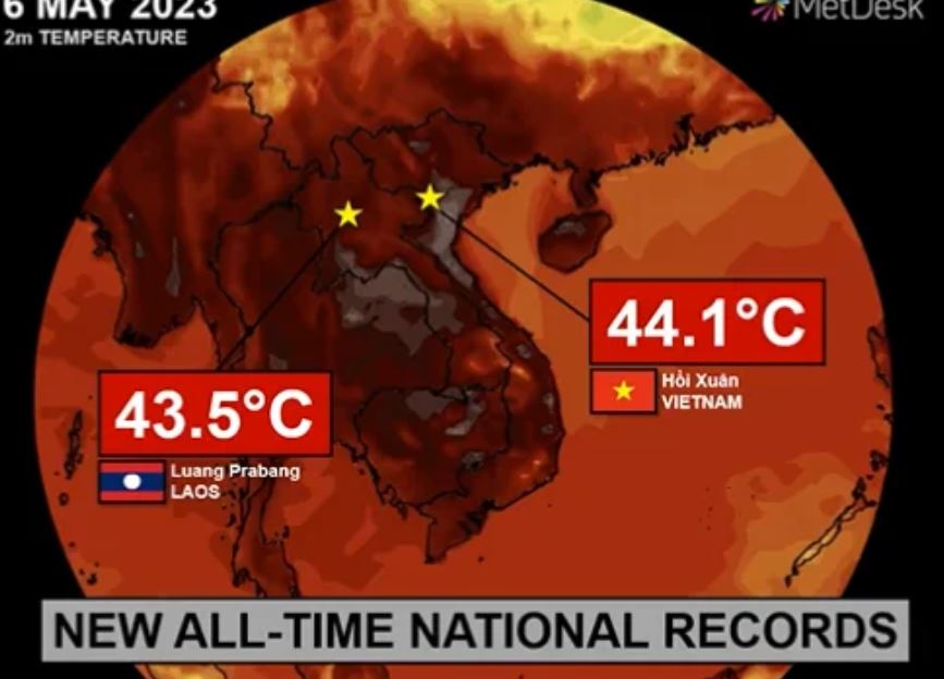 Во Вьетнаме зафиксирована самая высокая температура в истории страны — чуть более 44 градусов Цельсия — и эксперты предсказывают, что из-за изменения климата этот рекорд продержится недолго. Рекорд был установлен в северной провинции Тханьхоа, где власти призвали людей оставаться дома в самое жаркое время дня.
