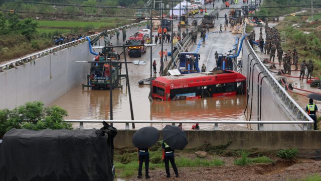 В Южной Корее по меньшей мере 40 человек погибли в результате наводнений и оползней, вызванных проливными дождями и штормовой погодой. В центральной провинции Северный Чхунчхон в затопленном водой автомобильном туннеле погибло по меньшей мере 13 человек.