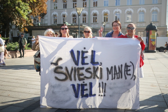 Встретив свои коллег, пришедших пешком из Клайпеды за период с начала забастовки, учителя из Профсоюза работников образования Литвы (ПРОЛ) во главе с Андрюсом Навицкасом собрались в четверг у здания правительства, чтобы потребовать ускоренного повышения зарплаты.