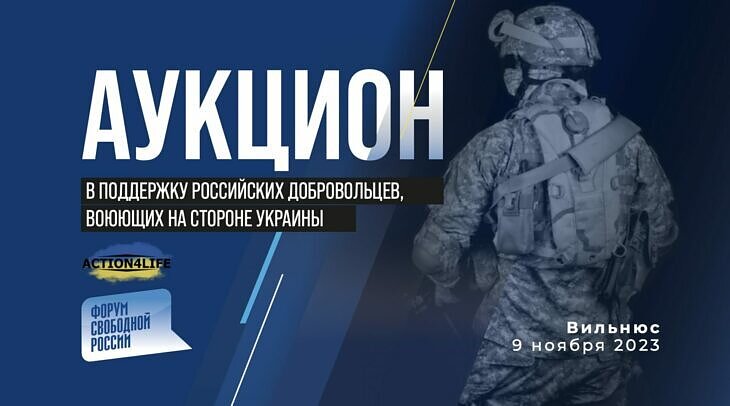 9 ноября Форум свободной России совместно с гуманитарной инициативой Action4. life проведет в Вильнюсе благотворительный аукцион. Вырученные на аукционе средства будут направлены на нужды русских добровольческих батальонов, воюющих в составе Вооруженных сил Украины.